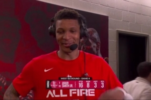 24直播网4月27日讯 在今天结束的一场季后赛中,火箭以115-96战胜湖人,大比分1-3落后。赛后,火箭球员小贾巴里·史密斯接受了媒体的采访。以下是完整版采访内容。