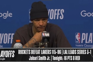 24直播网4月27日讯 火箭在主场以115-96击败湖人,将系列赛比分扳至1-3。赛后史密斯接受了媒体采访,以下为采访全文。