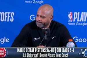 24直播网4月28日讯 NBA季后赛,活塞88-94不敌魔术,大比分1-3落后,赛后JB·比克斯塔夫接受了媒体采访,以下为采访全文。