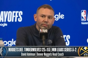 24直播网4月28日讯 NBA季后赛首轮G5,掘金125-113击败森林狼,大比分来到2-3。赛后阿德尔曼接受了媒体采访,以下为采访全文。