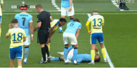 24直播网04月26日讯 足总杯半决赛,曼城对阵南安普顿。41分钟,努内斯倒地,经过队医检查后继续比赛。