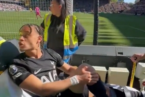 24直播网4月26日讯 英超第34轮,热刺客战狼队。比赛第58分钟,热刺的哈维·西蒙斯疑似遭遇膝盖重伤!随后被抬下场。