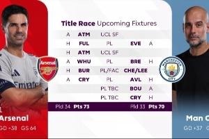 本赛季英超收官前,曼城和阿森纳在各项赛事都还有6场比赛。英超方面,曼城还剩5场比赛(3主2客),阿森纳还剩4场比赛(2主2客),两队都要对阵水晶宫,曼城的5个对手的英超排名普遍在上半区,阿森纳的剩余对手的英超排名则普遍在下半区。