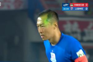 24直播网04月26日讯 中超第8轮,河南vs上海申花,比赛第39分钟裁判判罚点球,吴曦主罚点球时,主场球迷用激光笔照射影响吴曦,但吴曦还是主罚命中。