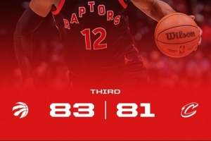 24直播网4月27日讯 系列赛G4,猛龙半场38-36领先骑士。